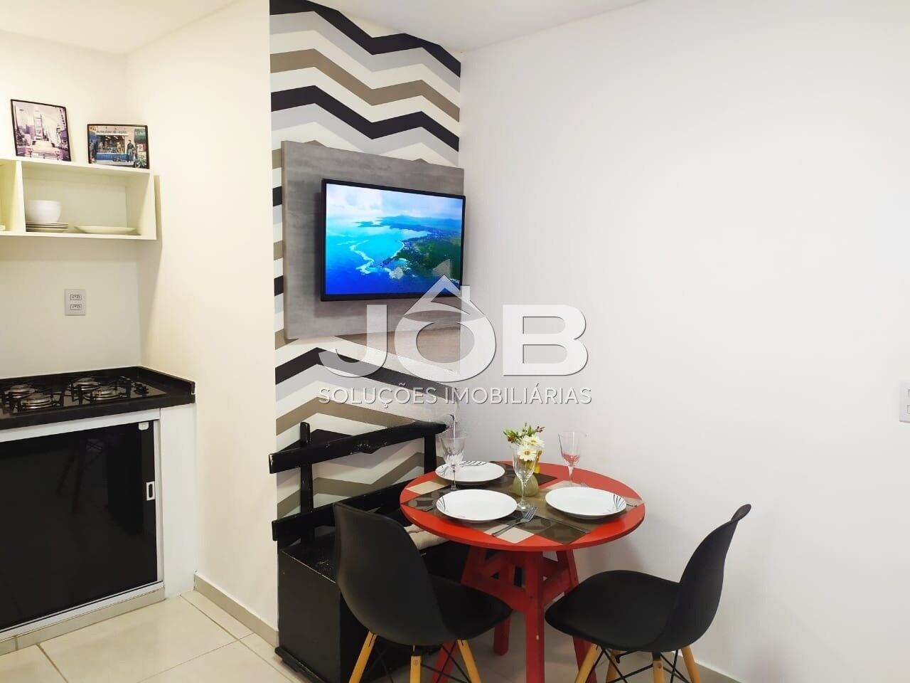 - Sala e cozinha com utensílios básicos